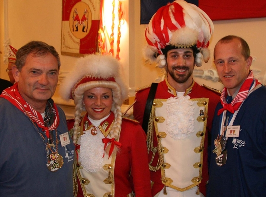 Waarnemend burgemeester Koen Verberck en Schepen van Verbroedering Luc Sevenhans in de raadzaal van Bad Neuenahr samen met acrobatische dansers van het Carnaval gezelschap van Bad Neuenahr-Ahrweiler. Dit ter gelegenheid van de slotmanifestatie in het gemeentehuis. Zij brachten een 5 daags bezoek aan onze partnergemeente waar carnaval zeer uitbundig gevierd wordt en waar zelfs 6 volledige en kwaliteitsvolle carnavalstoeten in de verschillende stadsdelen uitgaan.